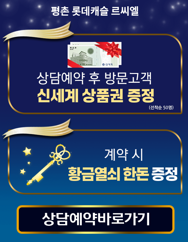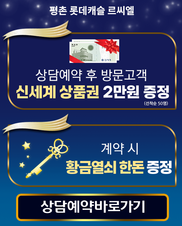 평촌 롯데캐슬 르씨엘 방문예약 고객의 개인정보를 수집합니다. 수집한 개인정보는 방문예약 이외의 목적으로는 사용하지 않으며, 모집 기간 완료 후 즉시 파기합니다. 개인정보의 수집 및 이용에 대한 동의를 거부할 수 있으며, 이 경우 방문예약 접수가 어려울 수 있습니다.